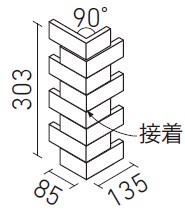| 90°曲ネット張り(馬踏目地)(接着) | HAL-35B/90-14/LCM-1…LCM-12 | (135+85)×303 | (132+82)×35 | 12.0 | 3.3シート/m | 10.0シート/ケース・15.0kg | 16,300円/m [49,390円/ケース] | ![]() 目地共寸法 |