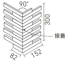 | 90°曲ネット張り(馬踏目地)(接着)注文生産品 | HAL-25B/90-14/SAI-1~SAI-6 | (152+82)×300 | (150+80)・(146+76)×22.5 | 8.0・12.0 | 3.4シート/m | 14.0シート/ケース・19.8kg | 18,600円/m [76,590円/ケース] | ![]() 目地共寸法 |
