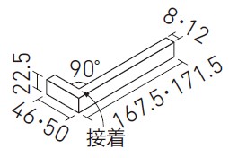 | 90°曲(接着) | HAL-25BN/90-14/SAI-1~SAI-6 | ― | (167.5+46)・(171.5+50)×22.5 | 8.0・12.0 | 31枚/m | 120.0枚/ケース・13.6kg | 13,300円/m [51,480円/ケース] | ![]() |