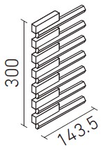 | 出隅用平ネット張り[ステッチ面](馬踏目地) | HAL-C/RYS-1~RYS-3 | 143.5×300 | (141.5・70.5)×19.5 | 13.0 | 6.7シート/m | 24.0シート/ケース・15.8kg | 13,600円/m [48,720円/ケース] | ![]() 目地共寸法 |
