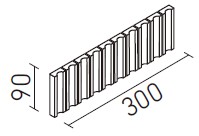 | 出隅用平ネット張り[クローシェ面](馬踏目地) | HAL-C/RYC-1~RYC-3 | 90×300 | (87・57)×27 | 15.0 | 6.7シート/m | 24.0シート/ケース・11.6kg | 13,600円/m [48,720円/ケース] | ![]() 目地共寸法 |