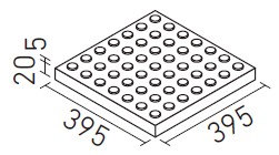 | 400mm角視覚障がい者用(誘導表示型)注文生産品 | MTP-400EX20/U-CYJ | 400×400 | 395×395 | 20.0+5.0 | 2.5枚/m | (3.0)枚/ケース・(21.4)kg | 11,800円/枚 [11,800円/枚] | ![]() |