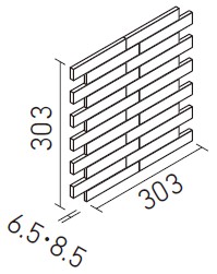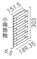 | 25×151角片面小端施釉(短辺)ネット張り | ECP-2515N1/CWD1N~CWD2N | 189.35×303 | (36.85・150.5)×24.25 | 6.5 | 3.4シート/m | 4.0シート/ケース・2.5kg | 9,200円/m [10,820円/ケース] | ![]() 目地共寸法 |