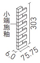 | 25×75角片面小端施釉(短辺)ネット張り | ECP-275N1/PLD1~PLD2 | 75.75×303 | (36.9・74.75)×24.25 | 6.0 | 3.4シート/m | 4.0シート/ケース・0.8kg | 9,200円/m [10,820円/ケース] | ![]() 目地共寸法 |