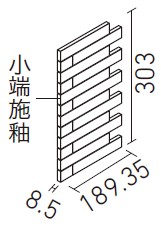 | 25×151角片面小端施釉(短辺)ネット張り | ECP-2515N1/GLN1~GLN4 | 189.35×303 | (36.85・150.5)×24.25 | 8.5 | 3.4シート/m | 4.0シート/ケース・2.5kg | 12,800円/m [15,060円/ケース] | ![]() 目地共寸法 |