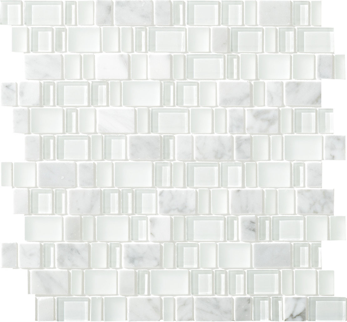 - ●光を透過しやすい素材のため、目地・下地の色の影響で施工前と施工後では色合いが違って見えることがあります。同様に、ガラスモザイクの側面や裏面のネット形状によって、商品の特性上部分的に暗い影や筋が見えたり、白い点線状のものが見えたりすることがあります。