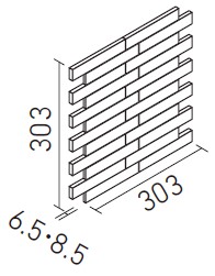 | 25×151角ネット張り | ECP-2515NET/NRC1~NRC3 | 303×303 | 150.5×24.25 | 6.5・8.5 | 11.3シート/㎡ | 11.0シート/ケース・12.0kg | 15,600円/㎡ [15,190円/ケース] | ![]() 目地共寸法 |