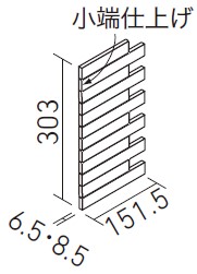 | 25×151角片面小端仕上げ(短辺)ネット張り(出隅用) | ECP-2515TNA/NRC1~NRC3 | 303×151.5 | (112.65・150.5)×24.25 | 6.5・8.5 | 3.4シート/m | 4.0シート/ケース・2.5kg | 12,800円/m [15,060円/ケース] | ![]() 目地共寸法 |