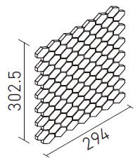 | 変形六角形平ネット張り | DTL-R/MEG-1~MEG-2 | 294×302.5 | 約40×29.5 | 約3.0 | 11.6シート/㎡ | (22.0)シート/ケース・(11.5)kg | 5,400円/シート [5,400円/シート] | ![]() 目地共寸法 |