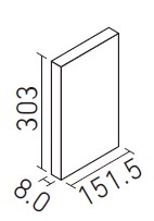 | 303×151角平(レリーフB) | ECP-315/STE1B~STE3B | 303×151.5 | 302×150.5 | 8.0 | 22.6枚/㎡ | (24.0)枚/ケース・(14.0)kg | 19,800円/㎡ [880円/枚] | ![]() 目地共寸法 |