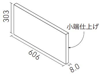 | 606×303角(レリーフA)片面小端仕上げ(右) | ECP-6301T/STE1A(R)~STE3A(R) | 606×303 | 605×302 | 8.0 | 3.4枚/m | (6.0)枚/ケース・(15.0)kg | 19,800円/m [5,830円/枚] | ![]() 目地共寸法 |