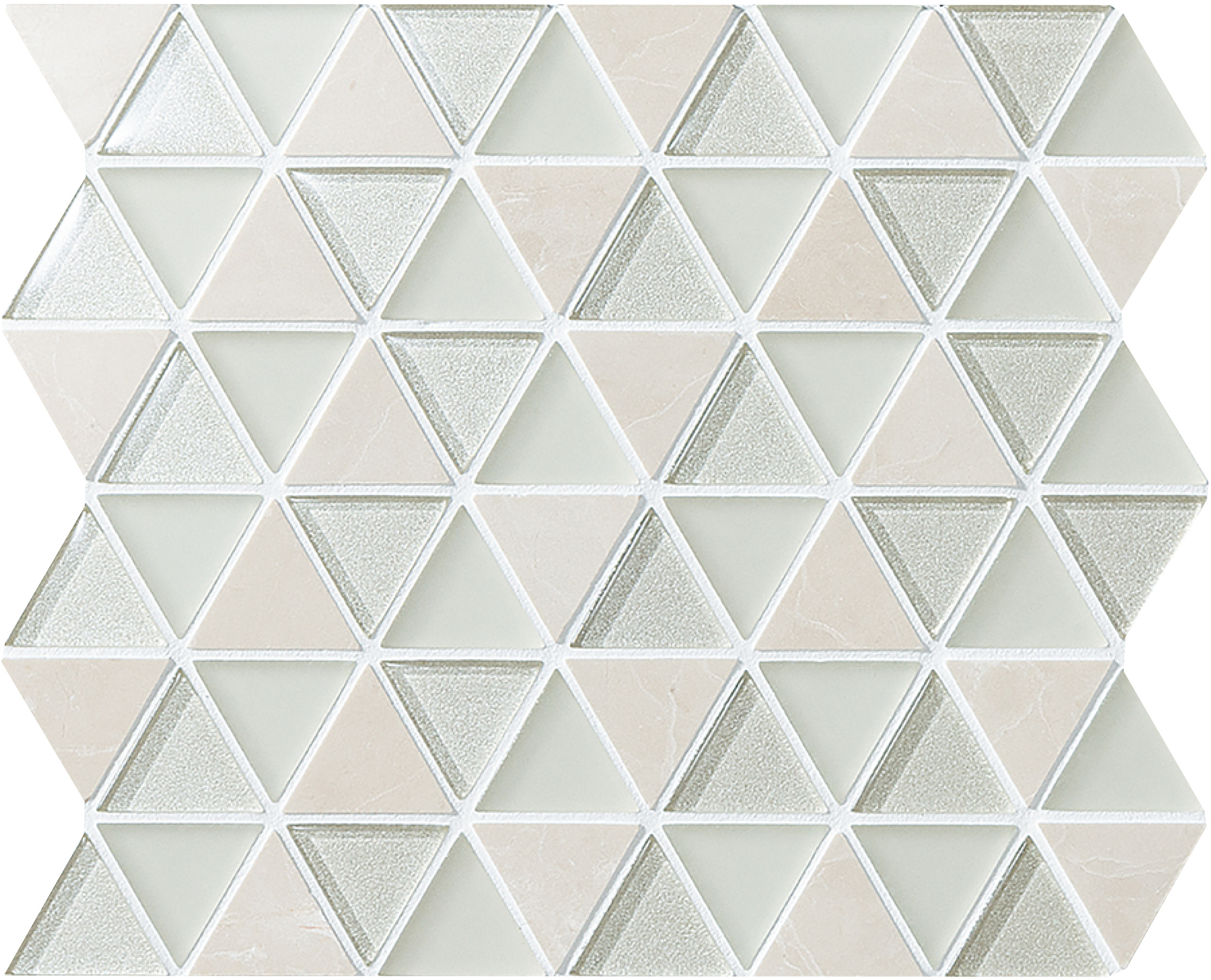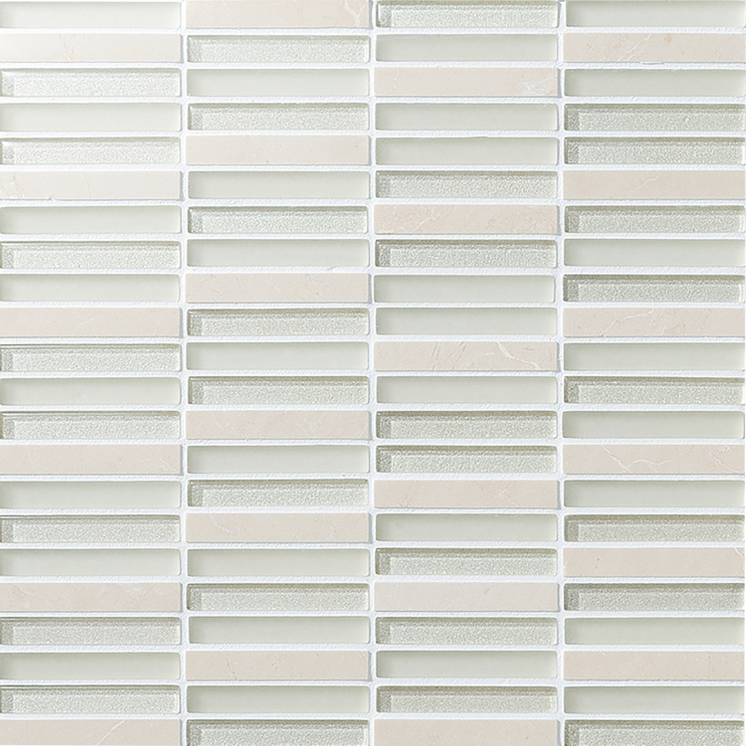 - ●光を透過しやすい素材のため、目地・下地の色の影響で施工前と施工後では色合いが違って見えることがあります。同様に、ガラスモザイクの側面や裏面のネット形状によって、商品の特性上部分的に暗い影や筋が見えたり、白い点線状のものが見えたりすることがあります。