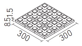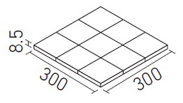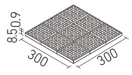 | 100mm角スロープ裏ネット張り(Fパターン) | PS-100NET/GS-1NF…GS-23NF | 300×300 | 92×92 | 8.5+0.9 | 11.5シート/㎡ | 12.0シート/ケース・19.0kg | 15,500円/㎡ [16,170円/ケース] | ![]() 目地共寸法 |