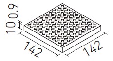| 100mm角スロープ裏ネット張り(Eパターン) | PS-100NET/GS-1NE…GS-23NE | 300×300 | 92×92 | 8.5+1.5 | 11.5シート/㎡ | 12.0シート/ケース・19.0kg | 15,500円/㎡ [16,170円/ケース] | ![]() 目地共寸法 |