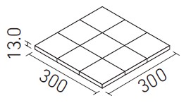 | 300mm角平 | PI-300/1~14 | 300×300 | 294×294 | 13.0 | 11.5枚/㎡ | 9.0枚/ケース・22.0kg | 23,000円/㎡ [18,000円/ケース] | ![]() |