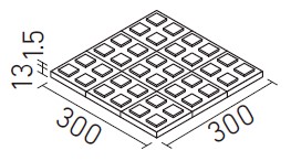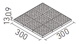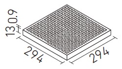 | 300mm角歩道用スロープ(Fパターン) | PI-300/1F~14F | 300×300 | 294×294 | 13.0+0.9 | 11.5枚/㎡ | 9.0枚/ケース・23.0kg | 26,200円/㎡ [20,500円/ケース] | ![]() |